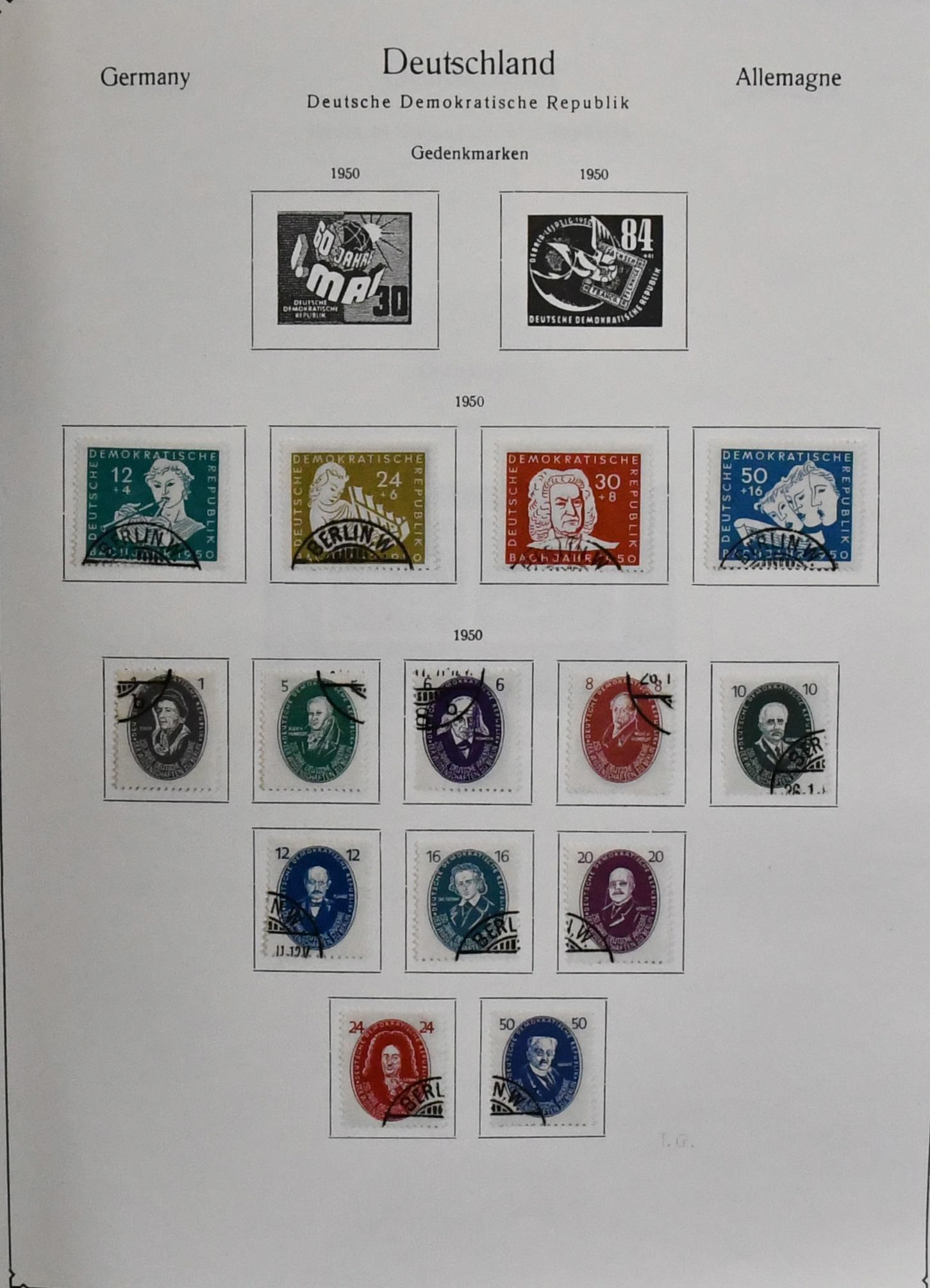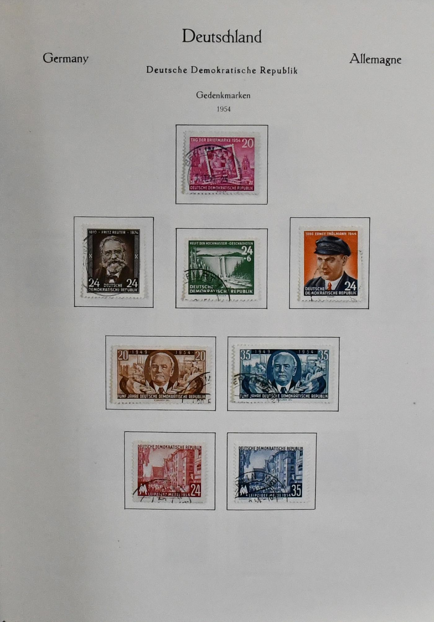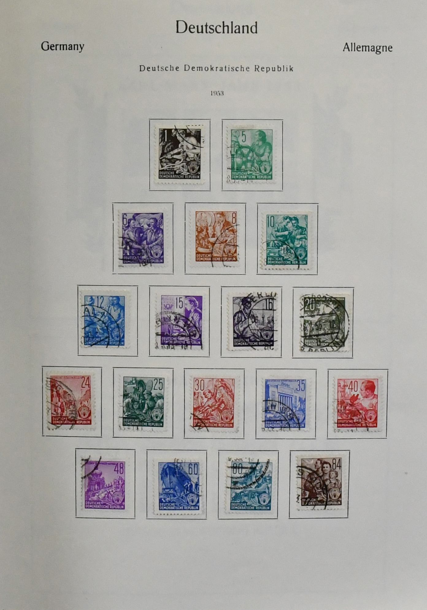 DDR, 1949-69, gestempelte Slg. im Vordruckalbum mit vielen Anfangswerten ab Nr. 242, dabei Akademie, Bl. 7 etc., ab 1955 nahezu vollständig, dabei Blöcke, Kleinbögen etc. Mi. über 2200,-