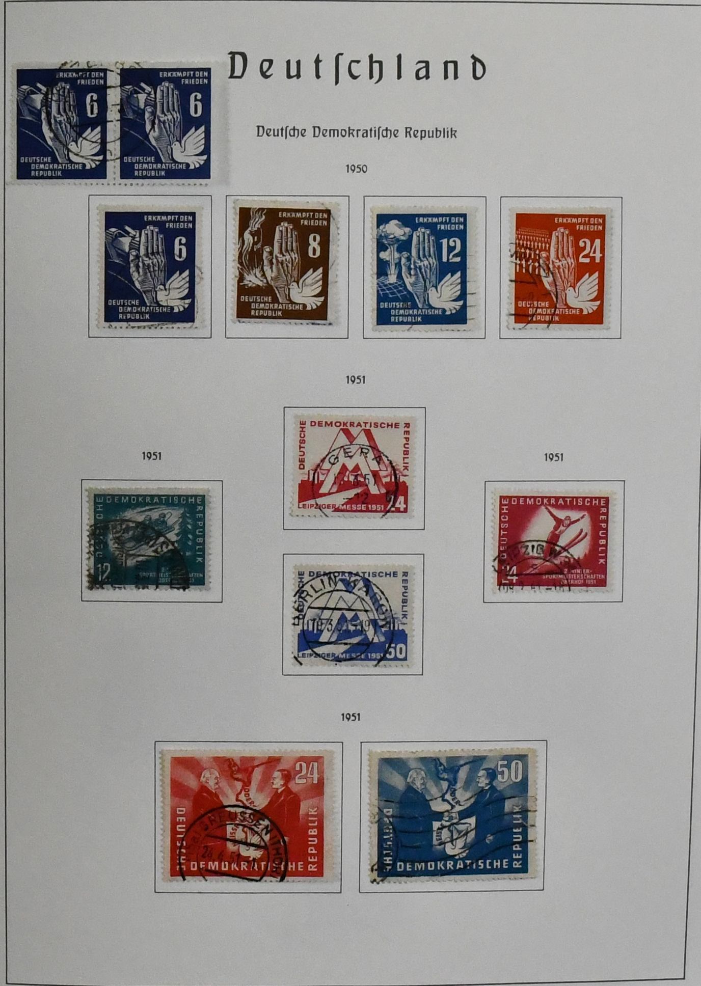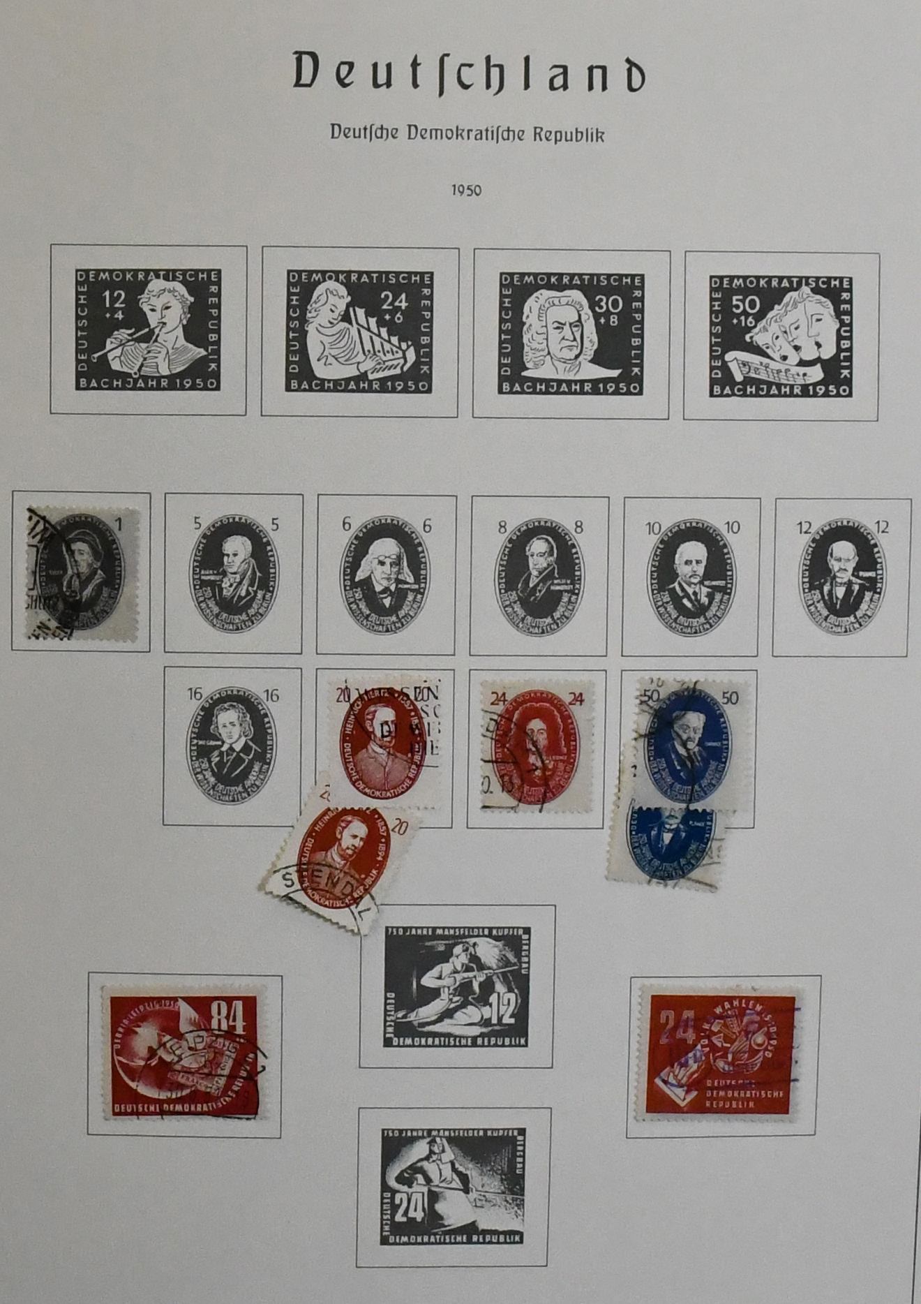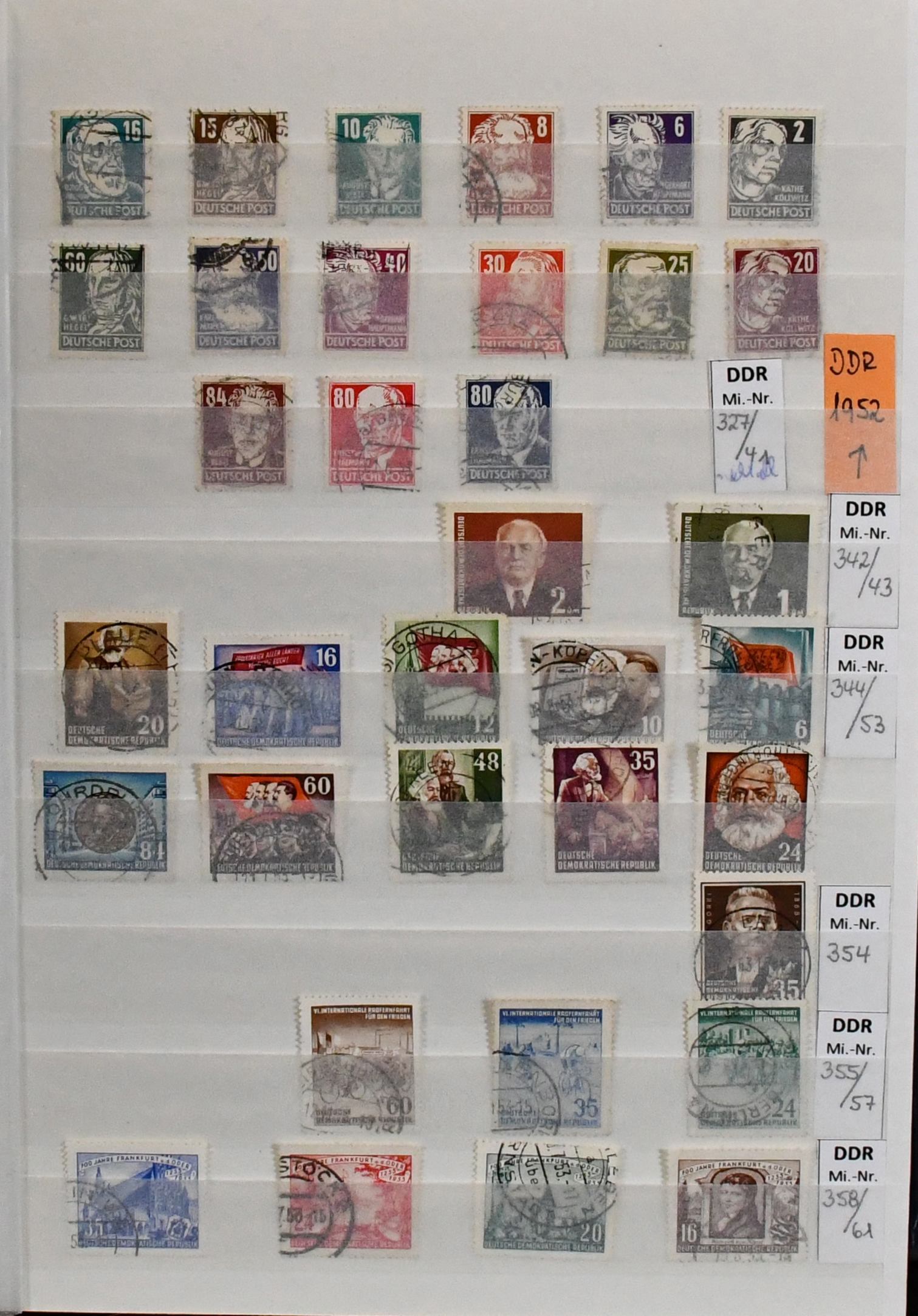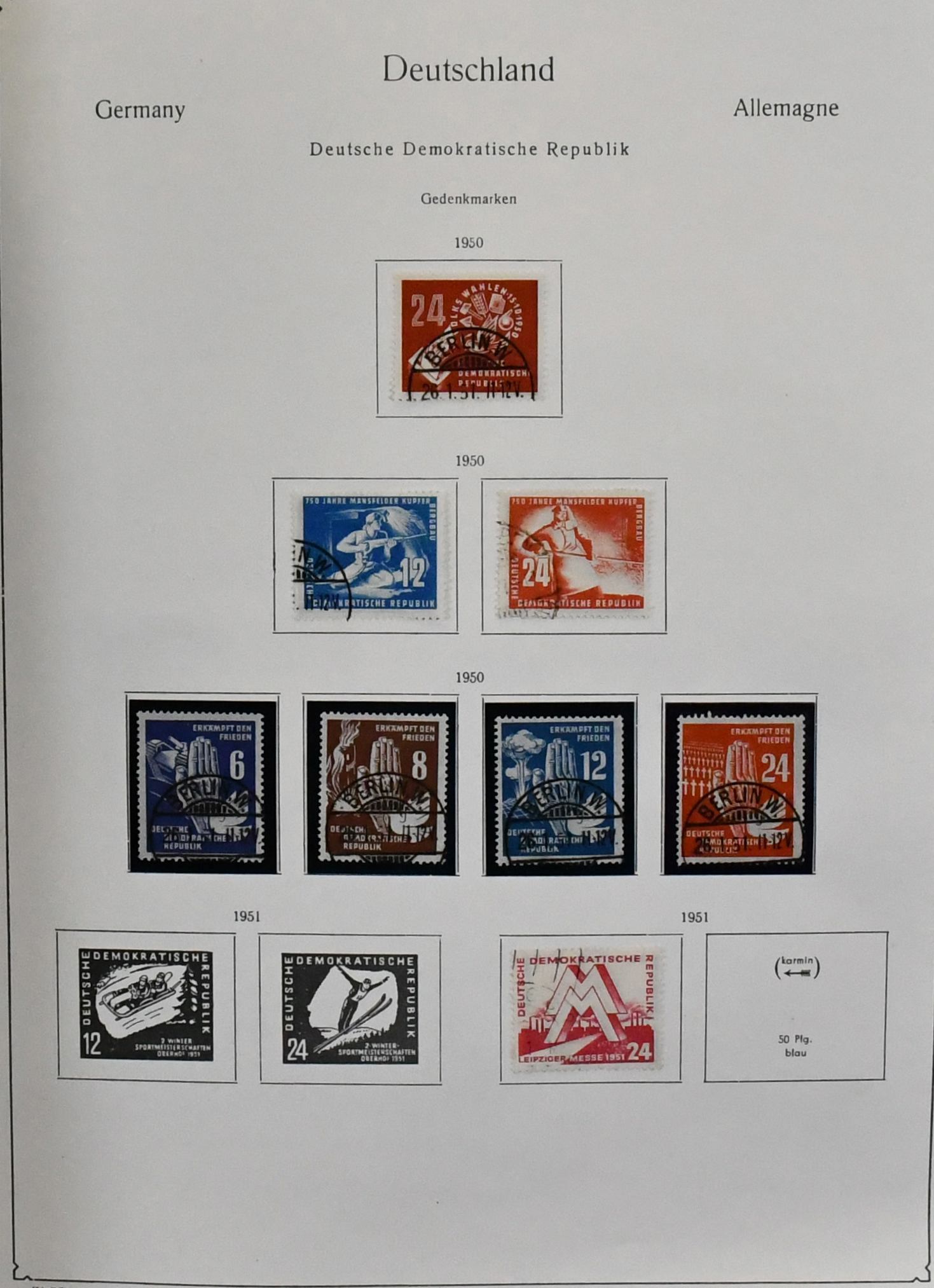 DDR, 1949-69, gestempelte Slg. im Vordruckalbum mit vielen Anfangswerten ab Nr. 242, dabei Akademie, Bl. 7 etc., ab 1955 nahezu vollständig, dabei Blöcke, Kleinbögen etc. Mi. über 2200,-