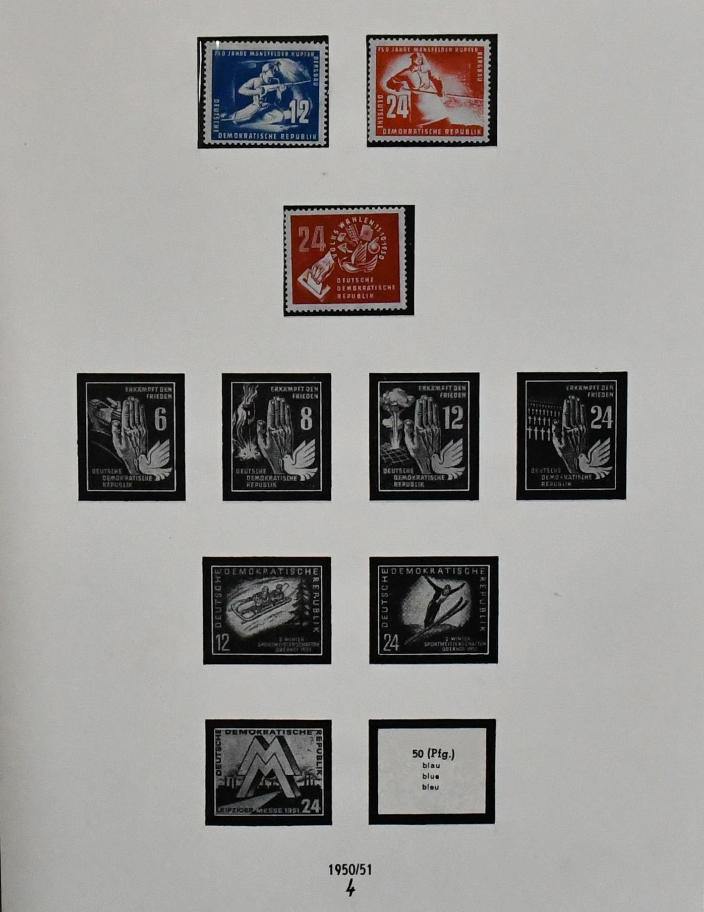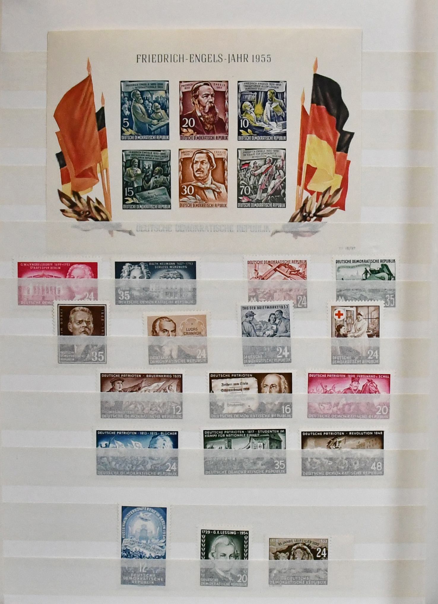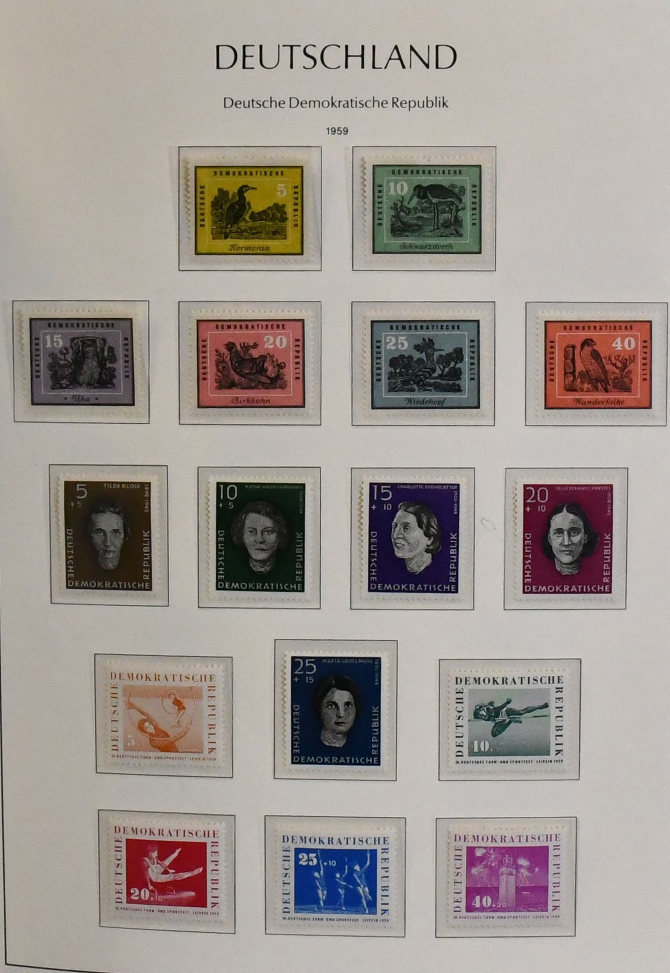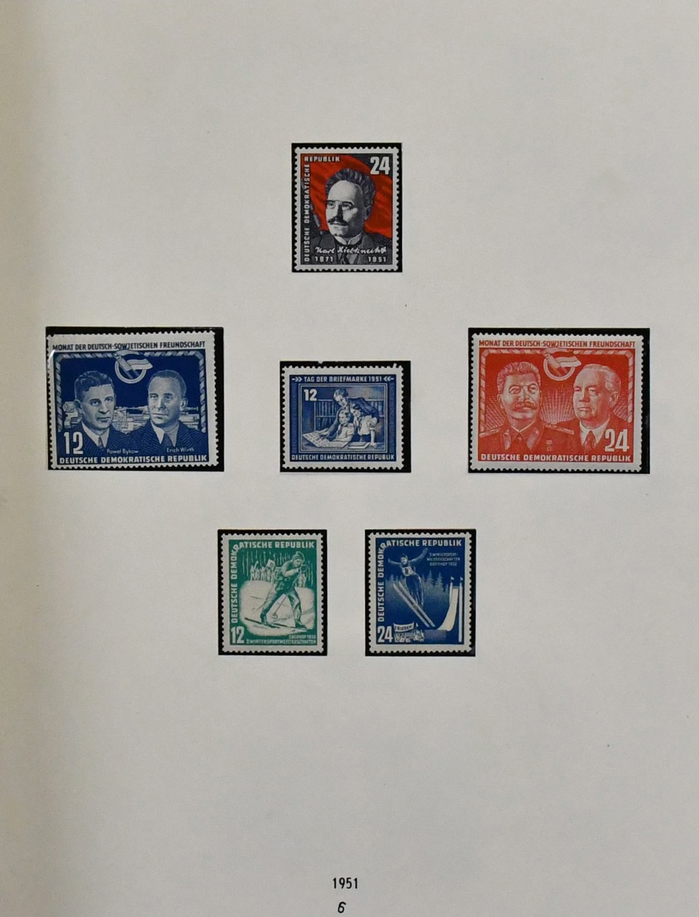 DDR, 1951/1973, postfrische Slg. mit Nr. 288, 322/26, Bl. 8/9B, Bl. 10/19 usw., von 1954-1973 kpl., in zwei Lindner-Vordruckalben. Mi. 2800,-