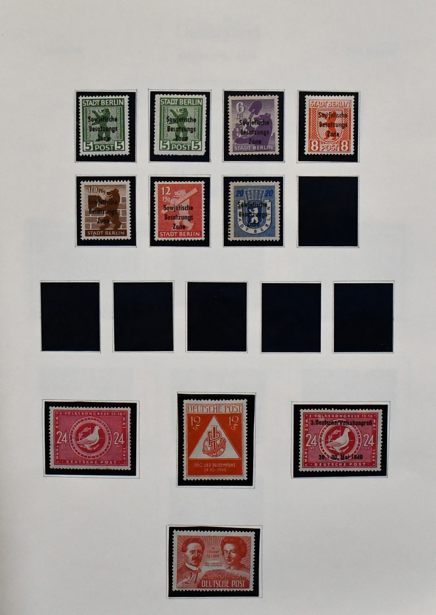 DDR, 1949/1960, Slg. nur der ersten Jahre im Album. Dabei viele bessere Werte wie u.a. Nr. 242/47, 261/70, 286/88 einmal postfr. (Nr. 287 ungebr.) und einmal gest., alle vier Marx-Blöcke, Bl. 10/15 postfr. usw. Mi. 2200,-