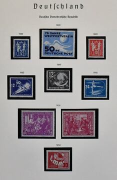 DDR, 1949-90, komplette, meist postfrische Slg. in vier Bänden (einige wenige Werte Haftspuren) mit allen besseren Werten und Blocks, inkl. Marx-Blöcken, Köpfe II, 5-Jahrespläne usw. Mi. 4500,-