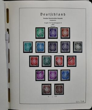 DDR, 1949/1990, gestempelte, bis auf 25 u. 84 Pfg. Köpfe II, Nr. 251-54 und Bl. 8/9, nahezu kpl. Slg., dabei Bl. 7, Bl. 10/19, Nr. 261/70, 286/88 usw., in fünf Vordruckalben. Dazu einige Besonderheiten wie Wasserzeichen, zusätzlichen Block-Einzelwerten usw. Mi. 5500,-