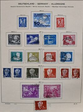 DDR, 1949-1990, zweibändige alte Slg., praktisch überkpl. gestempelt (ohne Marx-Blöcke) mit sonst allen Anfängen, dabei u.a. Bach, Akademie, Chinesen, Köpfe II, zusätzlich mit Zus.-Dr. Messe `64, Dienst, mit Briefen, u.a. geschnittenen Block-Marken aus Marx-Blöcken auf Briefen u.v.m. Mi. etwa 5000,-
