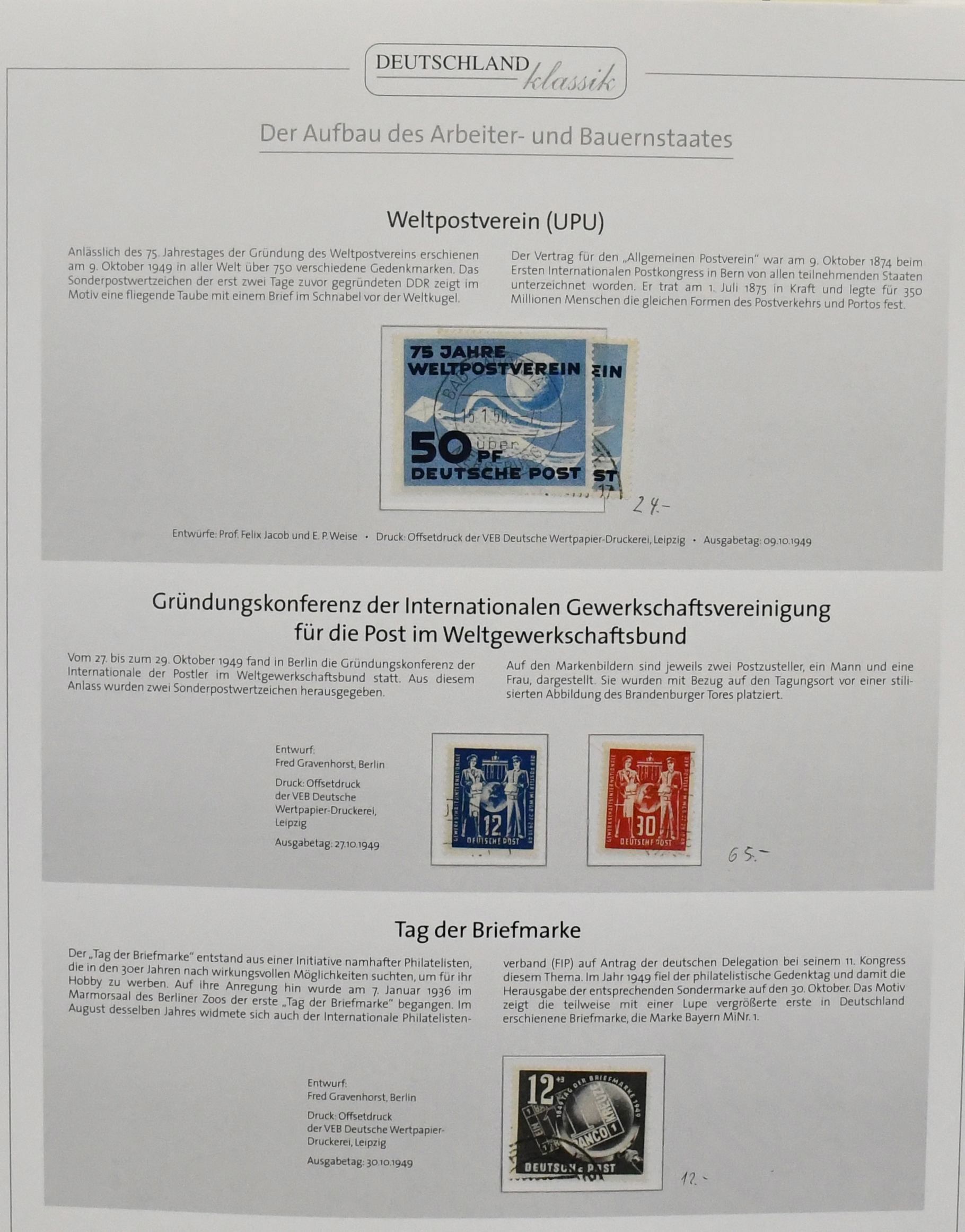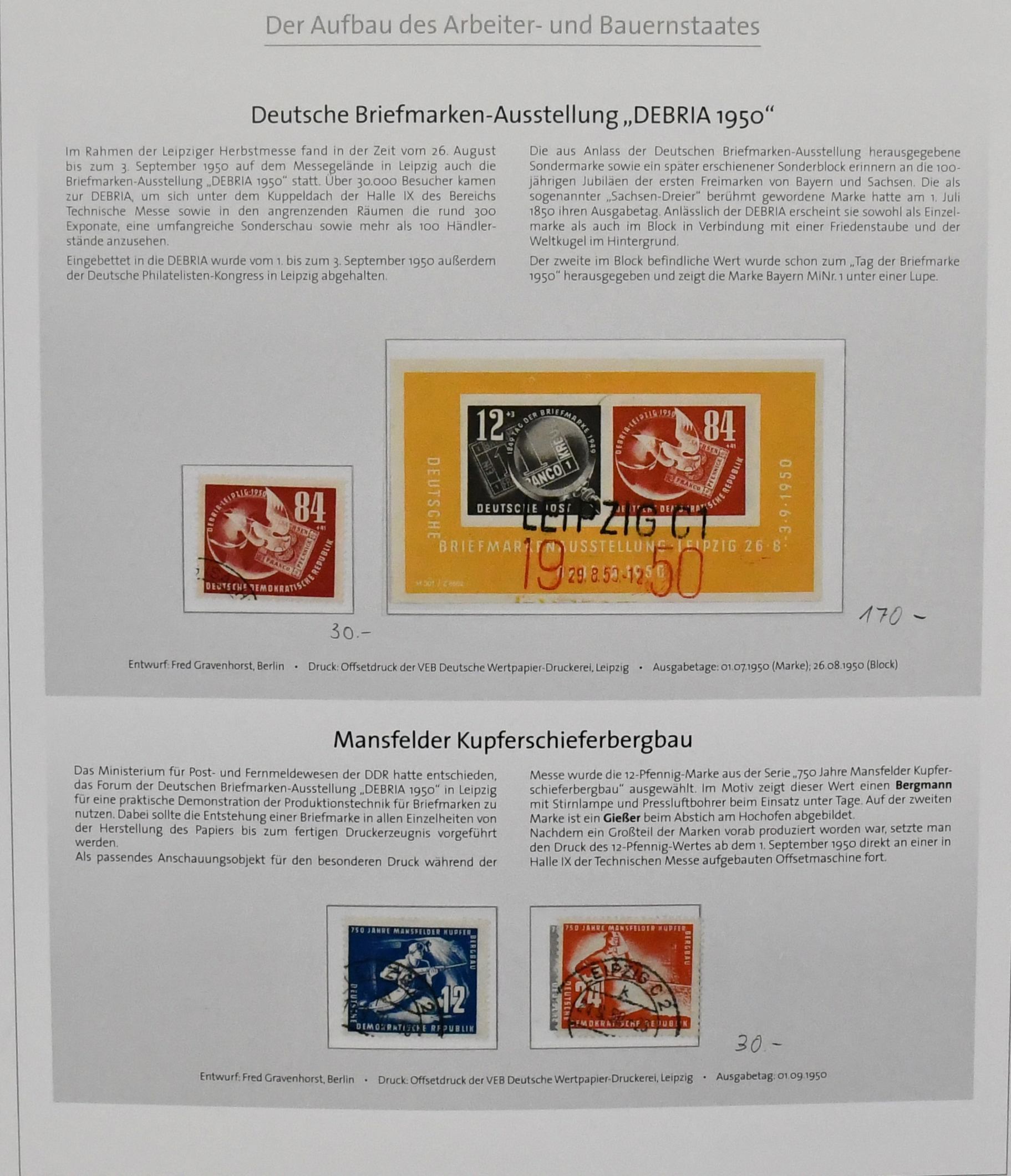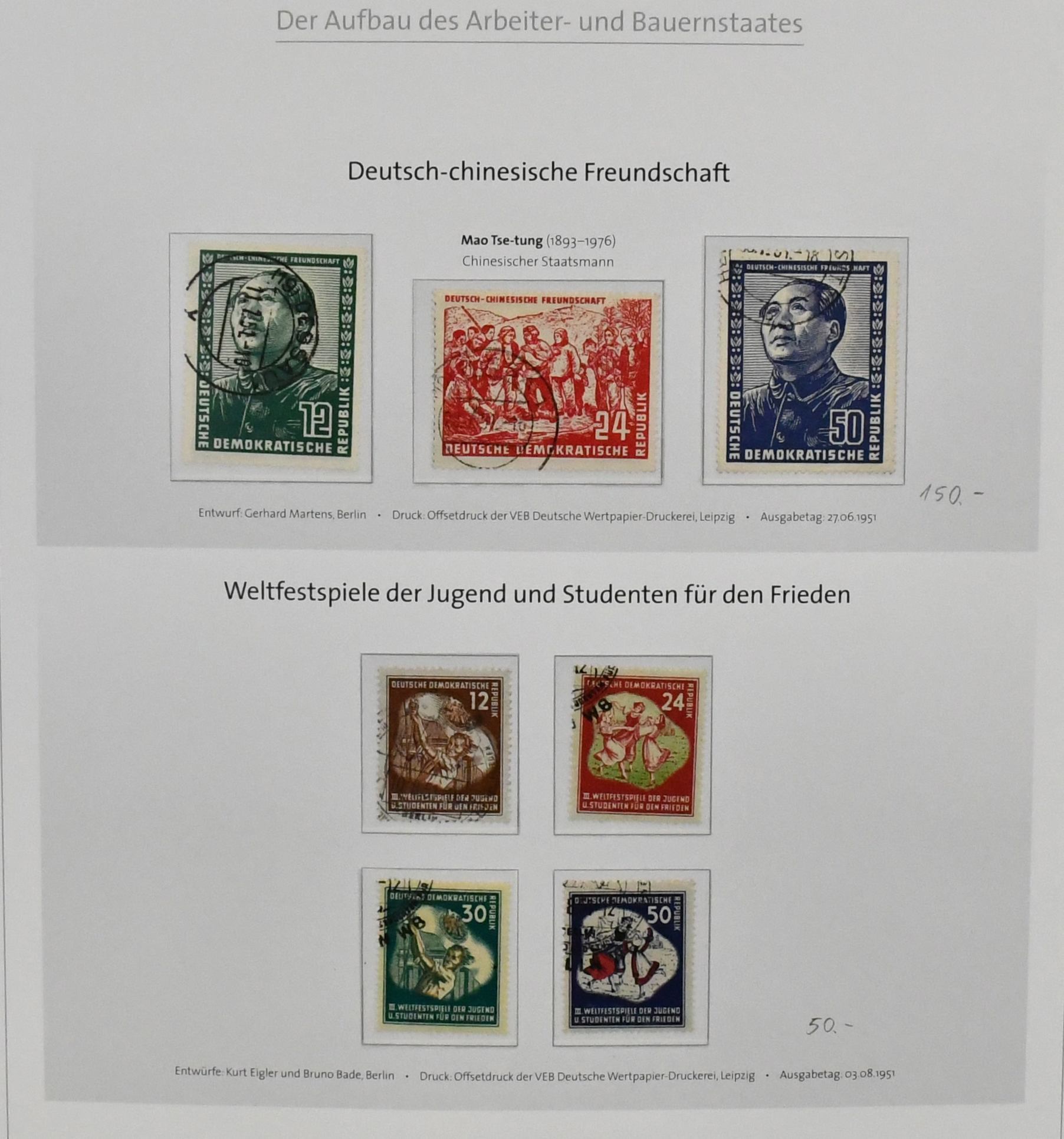 DDR, 1949-1960, gest. kpl. Sammlung im Vordruckalbum, dabei alle besseren wie Messe, Akademie, Chinesen, Köpfe II, Bl. 7, 8/9A/B, 10-13 usw. Mi. 2700,-