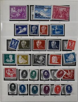 DDR, 1949-1953, gestempelte Slg. nur der ersten Jahre, lediglich Bl. 7 postfrisch, inkl. Nr. 242-46, 248-50, 256-70, 273-79, 282-321, diverse Werte Köpfe II inkl. Nr. 341 usw., günstig!