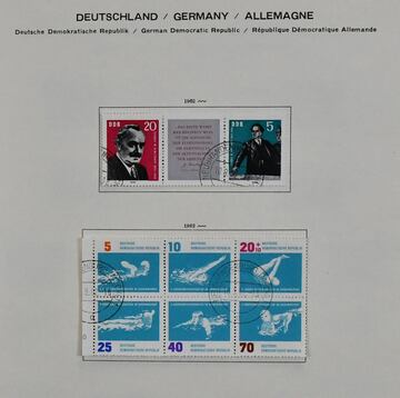 DDR, 1949/1990, postfrische Slg. ab Nr. 242/47, u.a. von 1955-1990, lediglich ohne Bl. 10/13 und 15, komplett, bis 1969 in zwei KABE-Vordruckalben und später im dicken E-Buch. Dazu einige ungebrauchte Werte wie die ersten beiden 5-Jahresplan-Sätze. Mi. 3400,-
