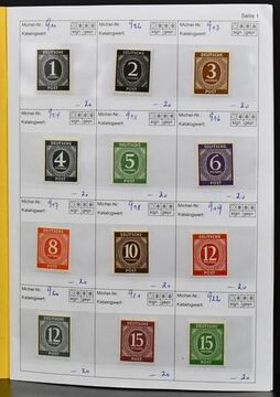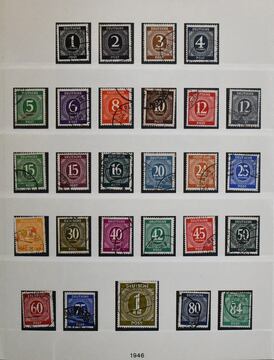 Gemeinschaftsausgabe, 1946/1948, überkomplette Sammlung von mehreren hundert Werten, neben allen Hauptnummern auch einige Besonderheiten enthalten, auf Leuchtturm-Vordrucken. Dabei Nr. 911/37 und 943/62 je postfr. u. gest. kpl. (Mi. 172,-), Bl. 12A/B postfr. (Mi. 120,-.), viele postfr. Oberränder, z.B. Nr. 944POR im Viererblock (Mi. 160,-), 912 mit DZ "F", 944 mit DZ, 955 und A956 im OR-Viererblock PORdgz (Mi. 160,-), Farben, HAN usw., vierstelliger KW