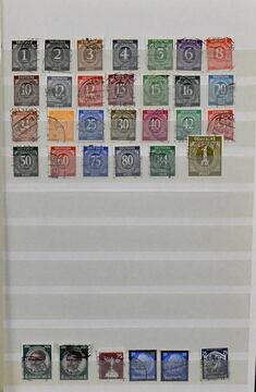 Gemeinschaftsausgabe, Partie von etwa 1700 postfr. und gest. Werten der Ziffern-Ausgabe, dabei Nr. 911/37 kpl. gest., viele postfr. Viererblöcke, Oberränder inkl. postfr. OR-Viererblock Nr. 921PORdgz (Falz im Oberrand, Mi. 210,-), H-Blatt Nr. 123 postfr. usw.
