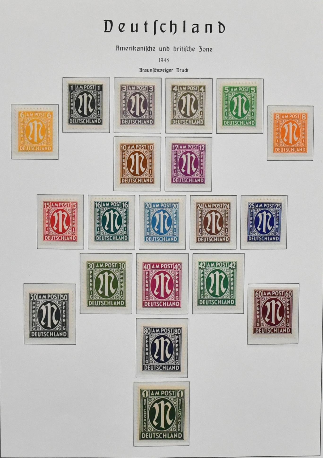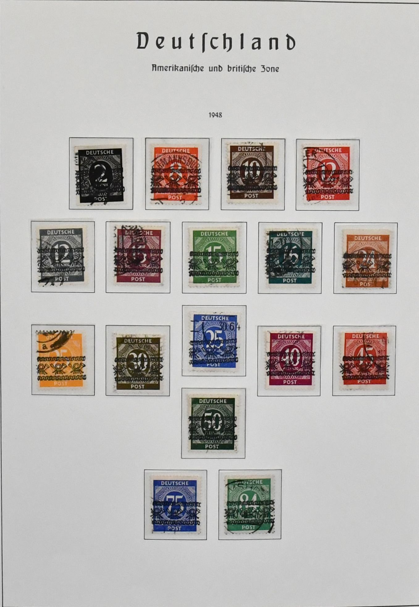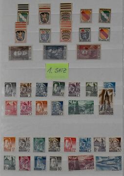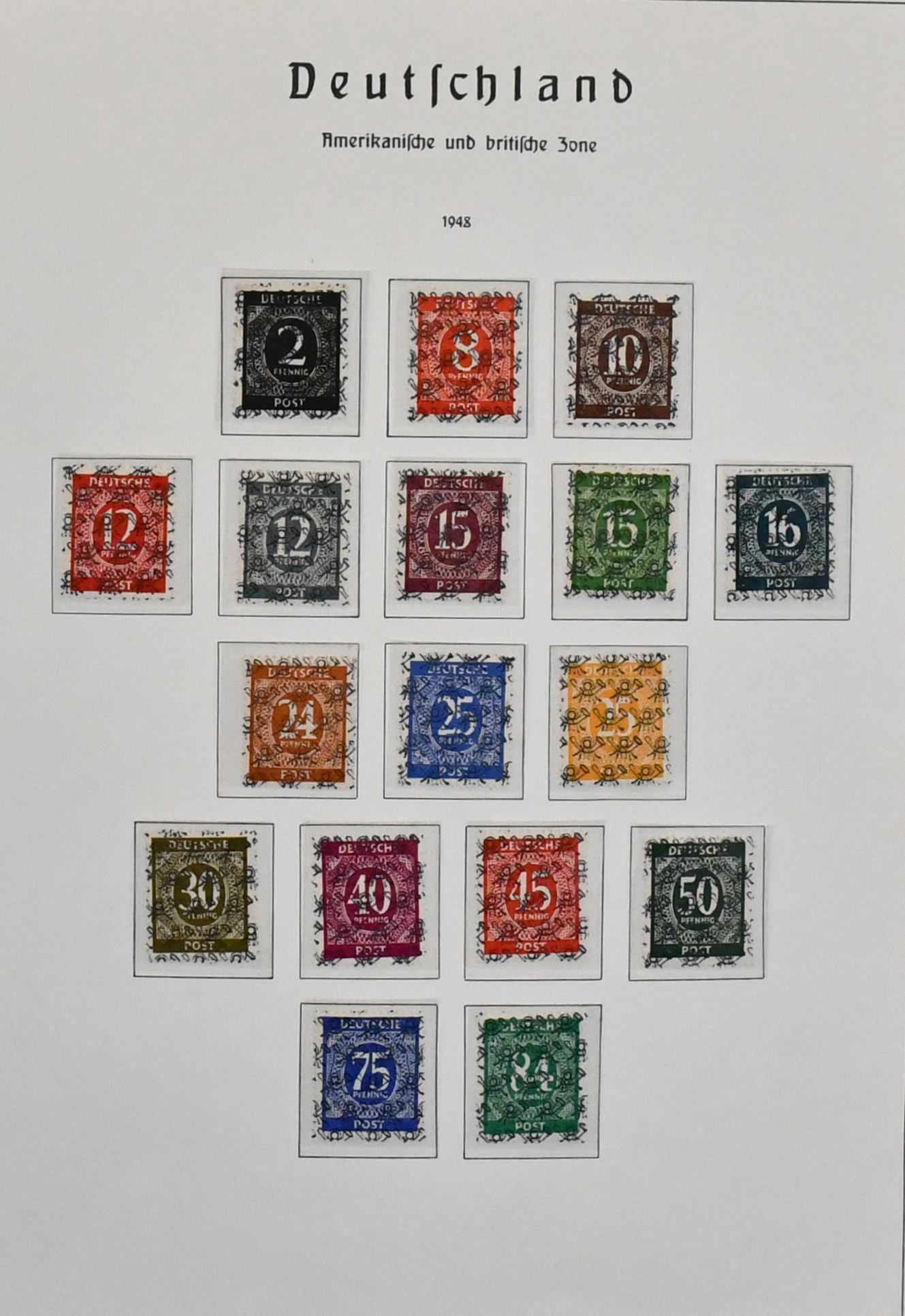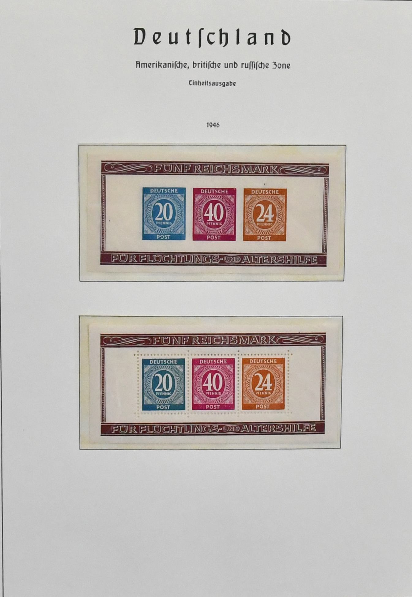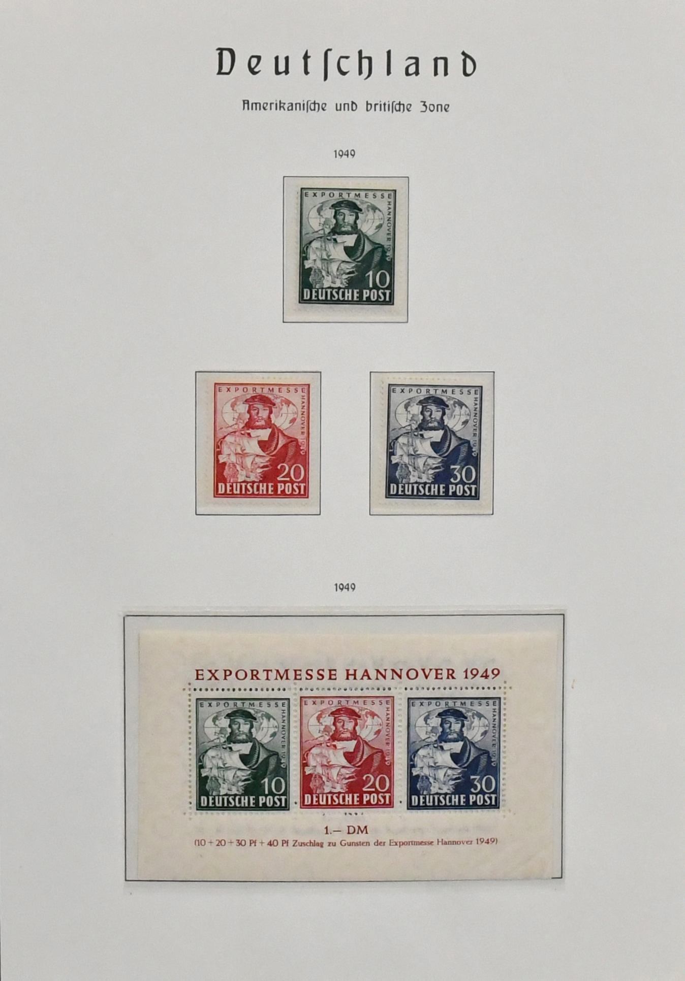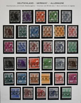 Alliierte Besetzung, 1945/49, Slg. mit Gemeinschaftsausgabe, sowie meist Bizone ab Nr. 1/35, mit Nr. 36/51I und II, 97eg postfr. (Mi. 160,-), weiterer Nr. 97wg vom Oberrand postfr., Bl. 1 usw., auf Vordrucken