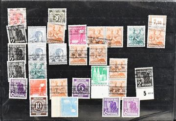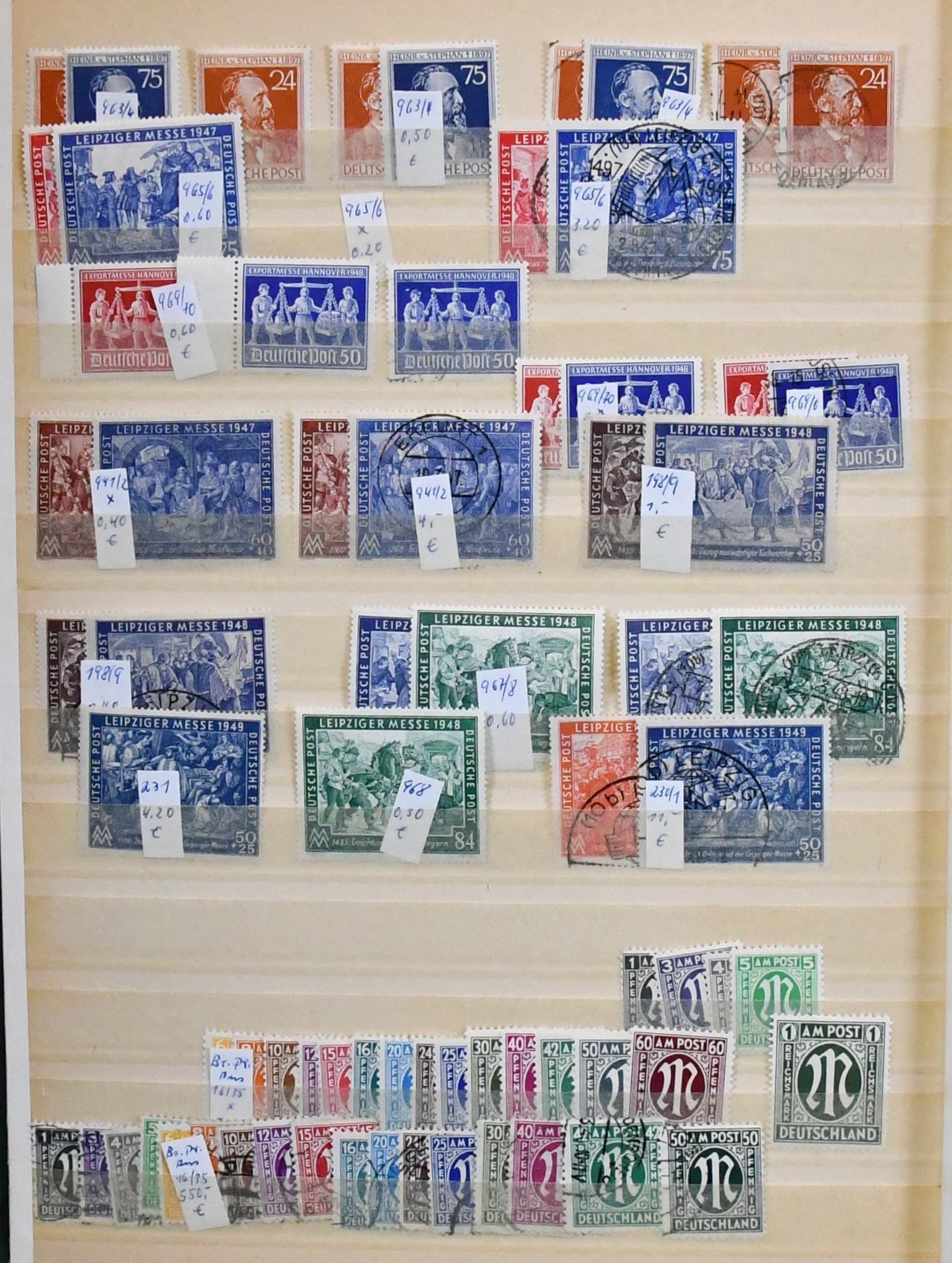 Westzonen mit Kontrollrat u. Bizone, gemischte Sammlung in allen Erhaltungen auf Vordrucken, dabei Kontrollrat Bl. 12A/B, Bizone AM-Post, Arbeiter- u. Ziffern-Aufdrucke ungeprüft, Messeblock Bl. 1 postfr.