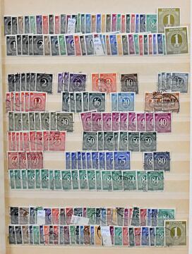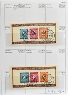 Gemeinschaftsausgabe, 1945/49, E-Buch mit rund 3300 Werten, sehr sortenreich, mit vielen versch. Farben, Randstücken, Nr. 930 zwölfmal gest. (Mi. 480,-), Bogenecke Nr. 941 gest. mit Druckvermerk (Mi. 200,-), 943/62 mind. sechsmal gest., Bl. 12A/B mit SST (420,-) usw.