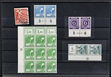 Alliierte Besetzung/Kontrollrat, postfr./gest. Zusammenstellung Ziffern u. Arbeiter-Randbesonderheiten, dabei Nr. 916 mit seltener Bedarfs-HAN "4119.2" (Mi. 200,-), 946DZ negative "8", 949 negative "1", 950 HAN "4131.2", sowie PF 961I ("Ast am Flügel") gest. (Mi. 250,-)
