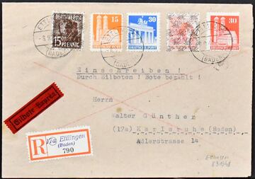Alliierte Besetzung, Partie von 40 Belegen, fast alles von oder nach Ettlingen in Baden gelaufen, dabei Einschreiben und Expreßbriefe, zusätzlich einige Briefe Bund, sowie etwas Ausland (diese unberechnet)