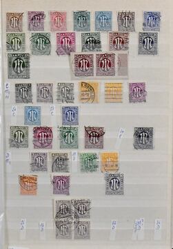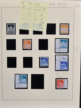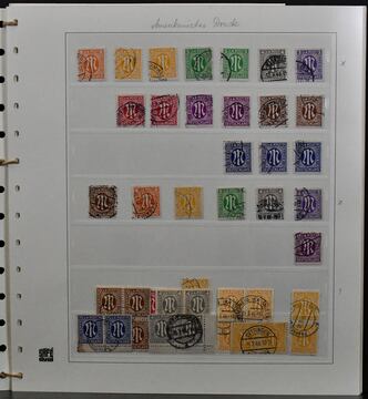 Bizone, 1945/49, gest. Slg. mit AM-Post nach Zähnungen spezialisiert, inkl. Nr. 34 mehrf. und einer Nr. 35 (alle ungepr.), Nr. 69/72 mehrf., Bauten spez. bis 5 Mark, Nr. 101/10, Bl. 1 mit Ortsstempel (Mi. 350,-) usw.