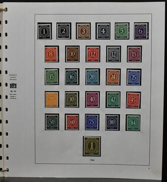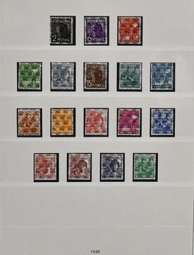 Bizone, 1945/49, etwas postfr., meist ungebrauchte Sammlung, bis auf einige Werte ex Nr. 52/68, kpl. Dabei Nr. 1/35, 36/51, 23 versch. Werte ex Nr. 52/68, 73/100eg/wg und beide Typen der Mark-Werte, bis auf Nr. 92eg, kpl. (Mi. zusammen 700,-), Nr. 101/10, Bl. 1 usw., auf SAFE-Vordrucken. Dazu Gemeinschaftsausgabe kpl. inkl. Bl. 12A/B
