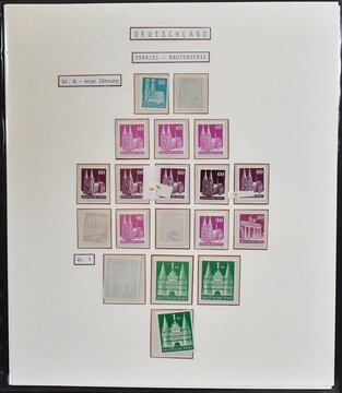 Bizone, Bauten-Serie, weit gezähnt, meist postfrische Spezialslg. nach Linien- und Kamm-Zähnung, dabei 60 Pfg. fünfmal postfrisch, Mark-Werte "Lange Treppe" meist postfrisch etc.
