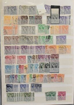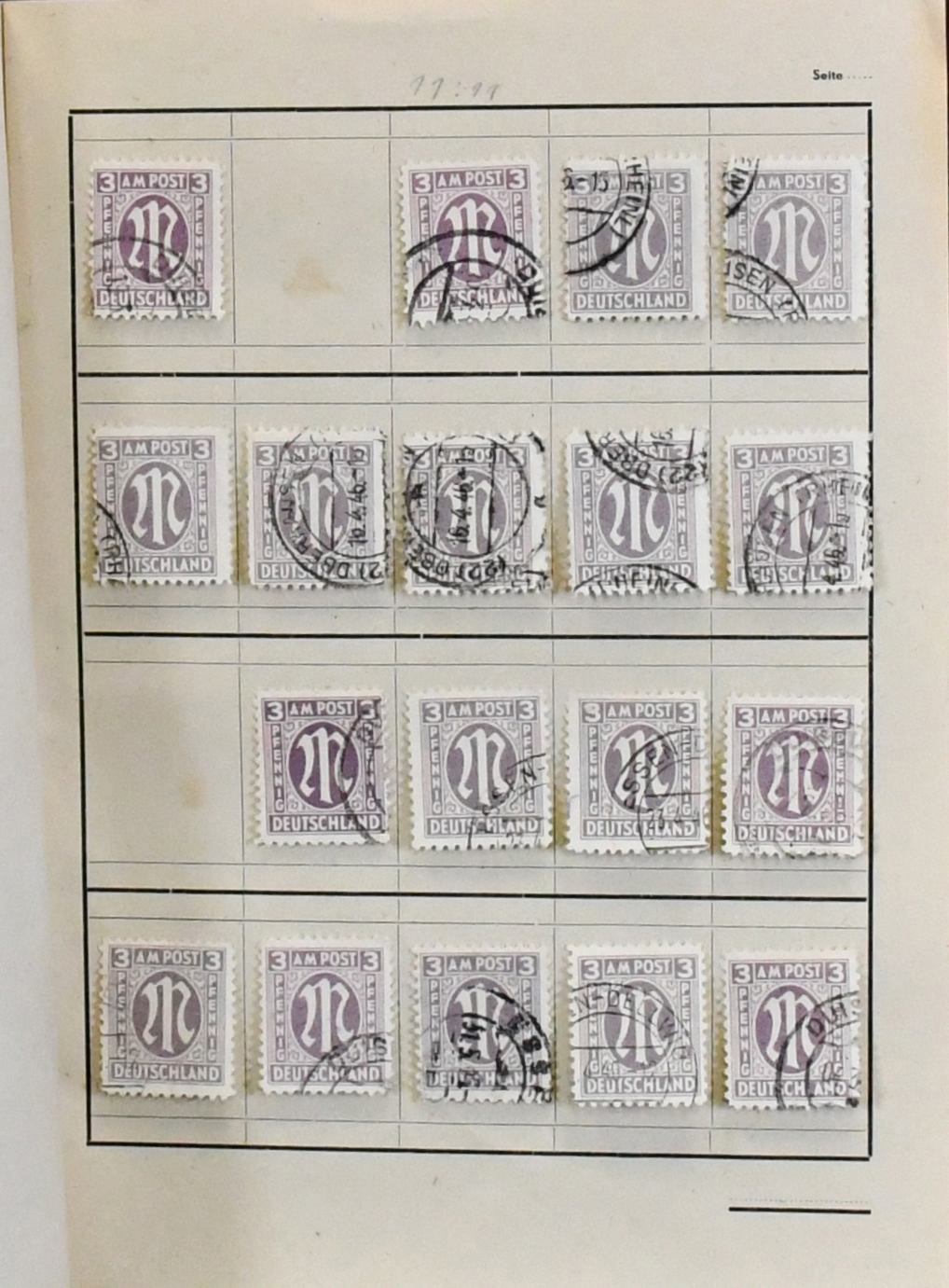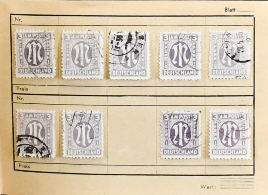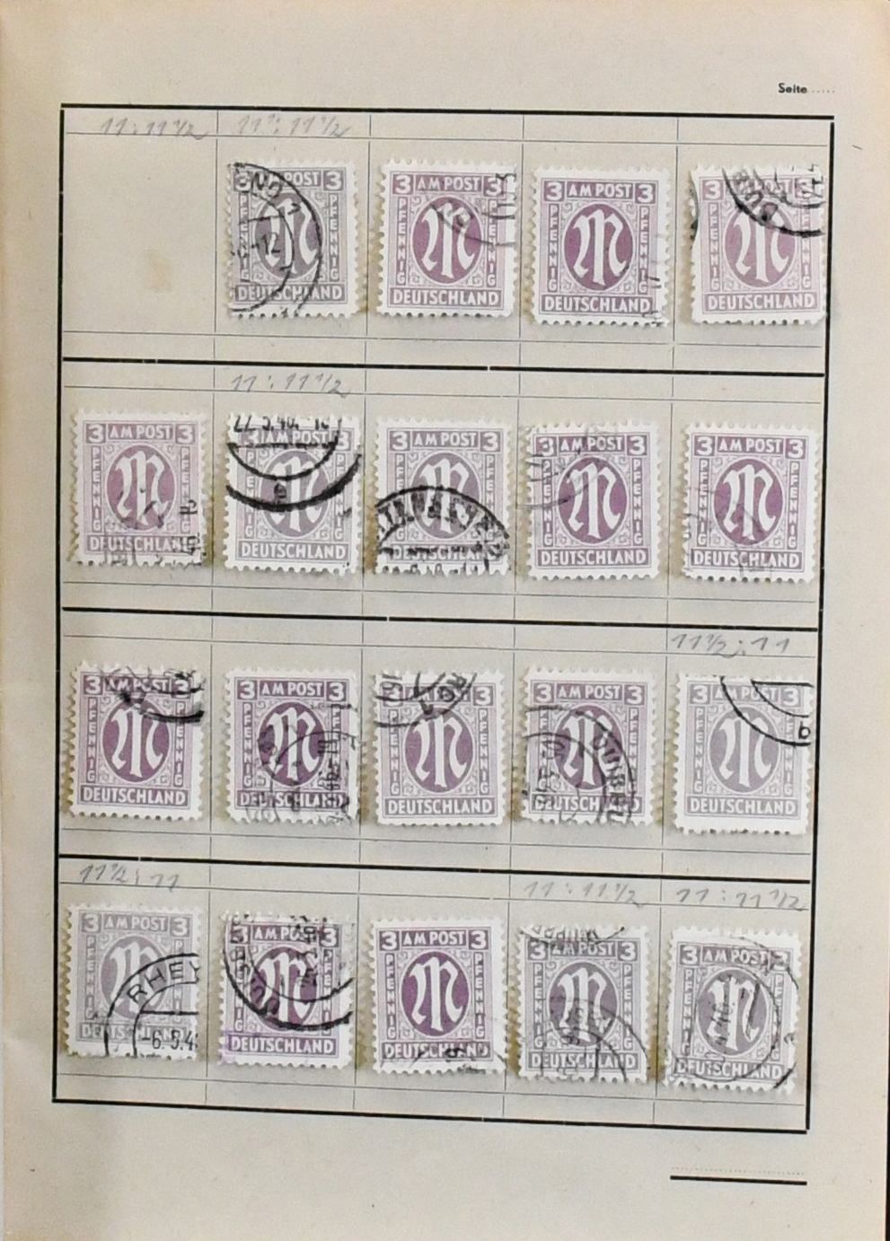 Bizone, Partie von etwa 1300 Werten, sortenreich, inkl. viel AM-Post, u.a. zweimal Nr. 35 gest. (Stempel ungepr.), zweimal Block 1, Nr. 101/10 mehrf. usw.