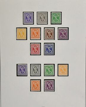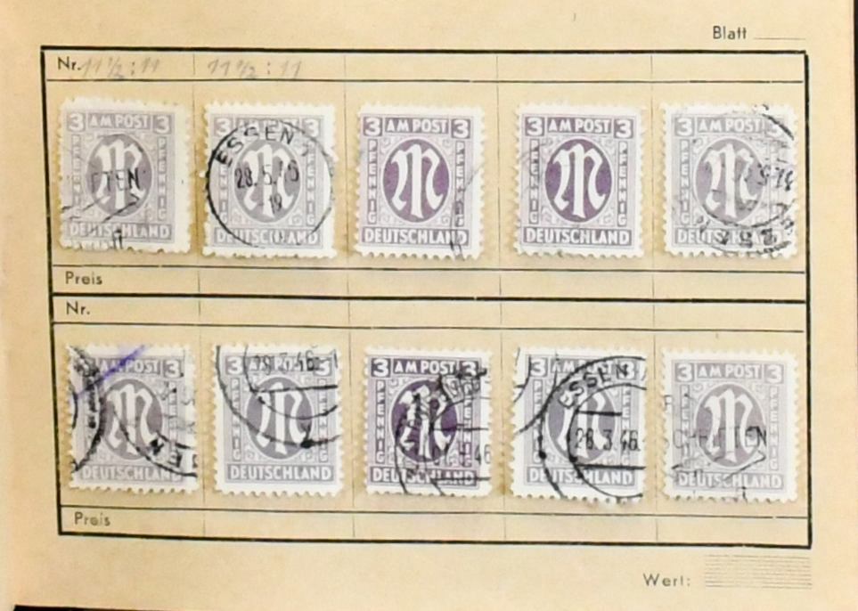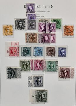 AM-Post, Nr. 10/15, englischer Druck, spezialisierte postfr. Slg. von etwa 180 Werten mit versch. Zähnungen, u.a. Nr. 10B, 13E/G (Mi. 338,-), 15Fz im Paar (Mi. 180,-, je gepr.), elf Platten- und Bogenzählnummern, inkl. dreimal Nr. 12 und zweimal Nr. 14, Plattenfehler usw.