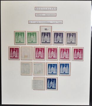 Bizone, Bauten, Mark-Werte in Wz. "Y", "kurze Treppe", 13 postfrische und vier ungebr. Werte, vierstelliger KW!