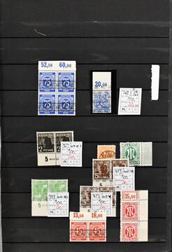 Bizone, Arbeiter-Bandaufdrucke spezial, Partie in allen Erhaltungen mit Besonderheiten wie Nr. 40INKa und b, 42INKb, Kopfsteher, 44IDDF gest. (unbekannt, Mi. für postfr. 180,-), 44INKb im Bedarfsblock und postfr. Mi. mind. 900,-