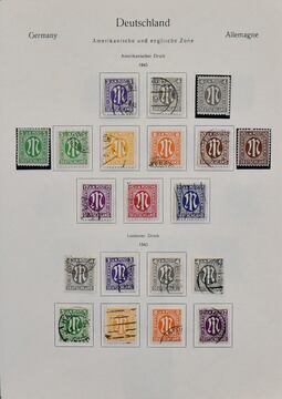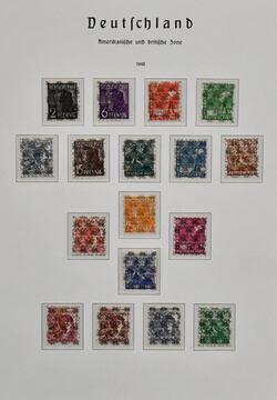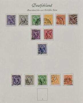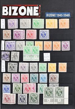 Bizone, 1945/1949, zumeist postfr. Slg. ab AM-Post, mit Nr. 36/51I/II (ohne Nr. 49I), Nr. 73/100wg (teils ungebr.), 101/10, Bl. 1 (ungebr.) usw., auf Leuchtturm-Vordrucken. Dazu Gemeinschaftsausgabe postfr. kpl. inkl. Bl. 12A/B