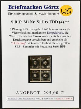SBZ, im wesentlichen gepr. Zusammenstellung inkl. Nr. 3B dreimal gest. (ungepr.) und im postfr. Eckrand-25er-Block (Mi. 790,-), 8y (240,-), 15b, 19y (55,-), 20-22 meist mehrf. inkl. postfr. 20b (810,-), 25b (55,-), 29xa (3, 210,-) und 36yg