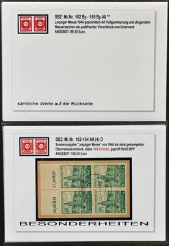 SBZ, West-Sachsen, nur Serie "Leipziger Messe", Mi.-Nr. 162-165, hochspezialisierte Slg. im Ringbinder, mit ausschließlich besseren Ausgaben, alle sorgfältig beschriftet, dabei Nr. 162-65By in postfr. VB, 162-64Ax (inkl. 165b) in gest. OR-VB, gepr. Ströh, Bl. 5X/Y postfr. etc. Mi. rund 2200,-