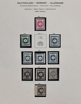 SBZ, West- und Ostsachsen, Spezialistenpartie mit hauptsächlich postfrischen besseren Varianten, dabei Nr. 52 mit Farben, u.a. seltene btx (schwarz), ex Nr. 56-60 mit Farben und vier geschnittenen Werten, Westsachsen mit Nr. 150/55X, Ziffern-Zus.-Dr. W13 bis S6 kpl. etc. Hoher KW!