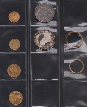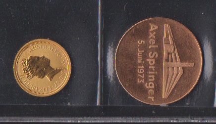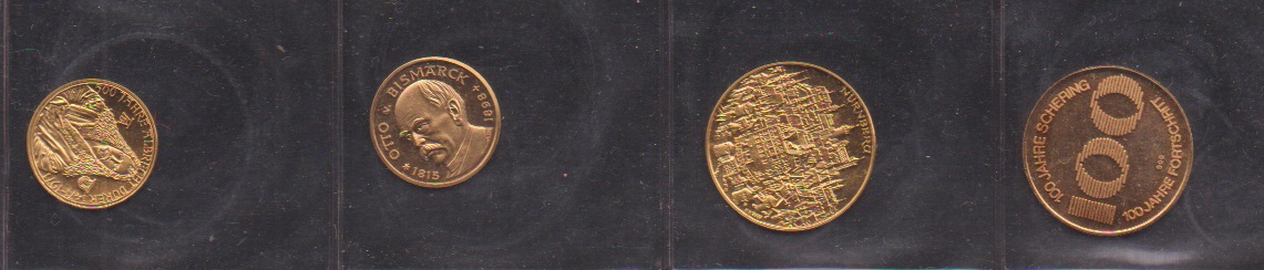 Alle Welt, kl. Münzbestand aus Nachlaß im Album und lose, dabei vier Goldmedaillen mit verschiedenen Feingehältern, u.a. "100 Jahre Aktiengesellschaft Schering 1971", div. Silber mit Medaillen, 5 u. 10 DM Stücke Bund etc. (1500,-)