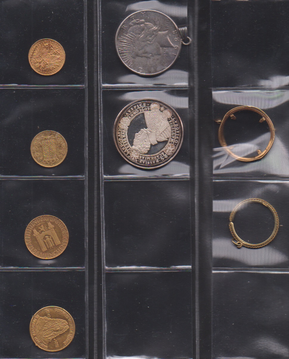 Deutschland/Alle Welt, Partie mit sechs Münzen, dabei vier Goldstücke mit 20 Fr. Louis XIII. 1817, Österreich mit 20 Kronen-Stück, zwei Goldmedaillen mit München, Leibniz, sowie zwei Silberstücke (2000,-)