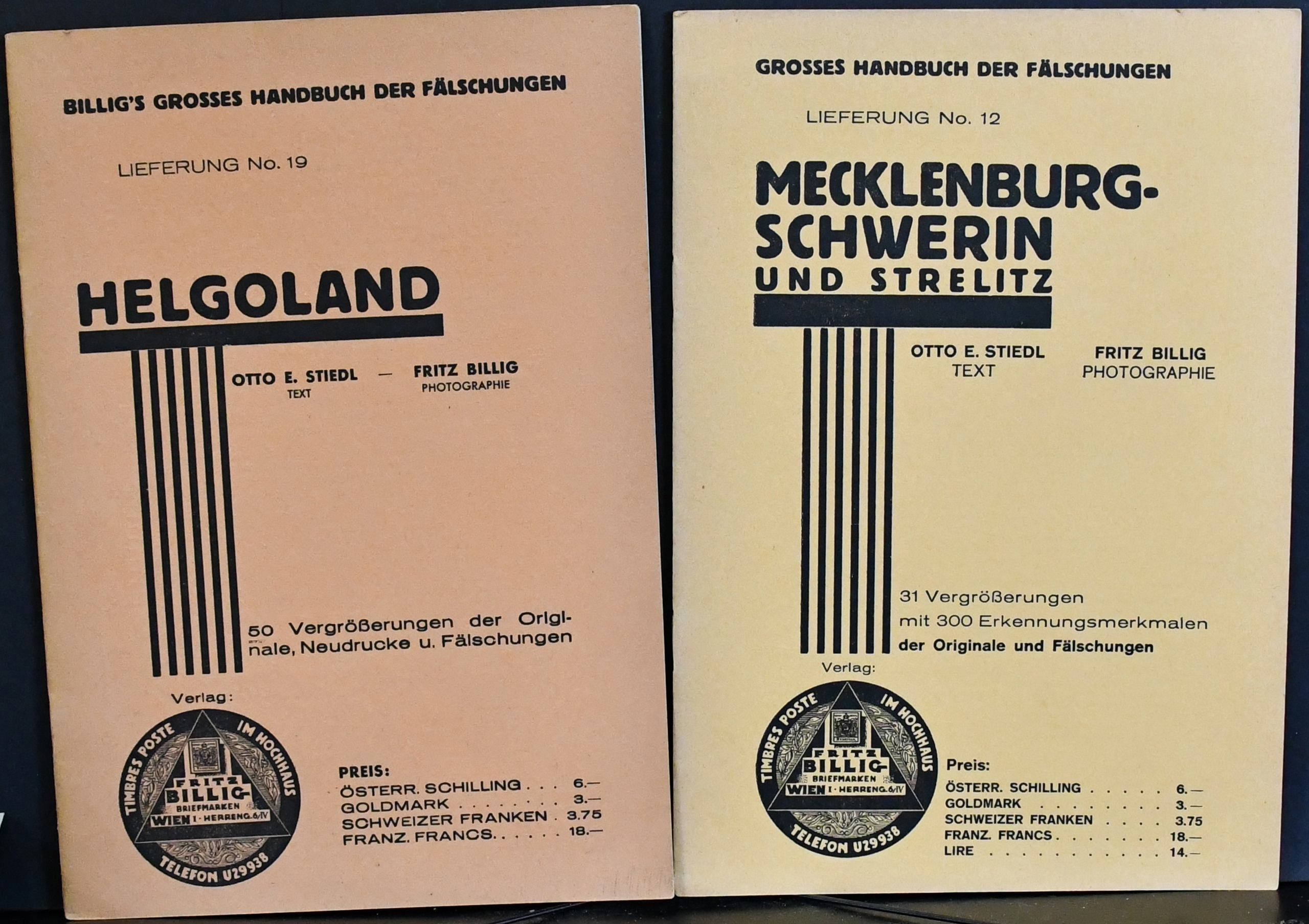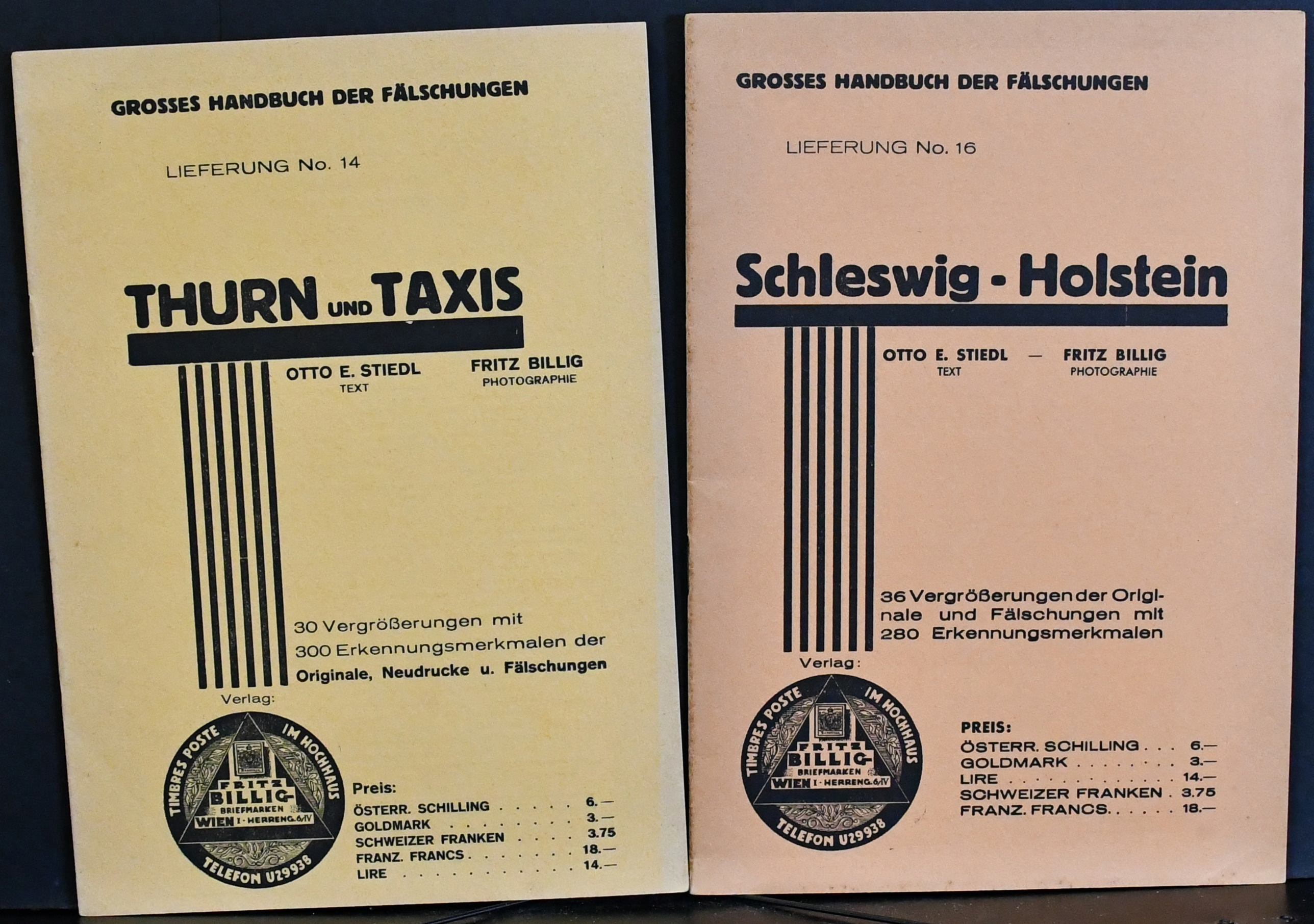 Altdeutschland, die frühen Fälschungs-Monographien von Stiedl/Billig aus den 1930er Jahren mit guten Beschreibungen und Abb., neun versch. von Baden bis Thurn und Taxis