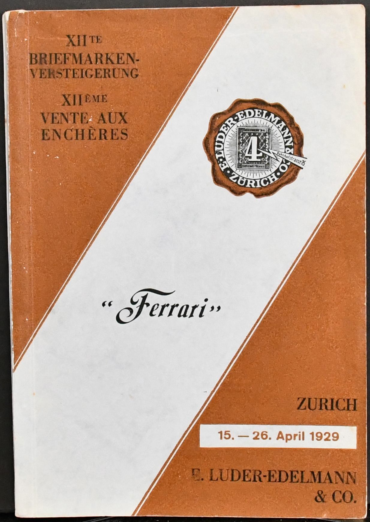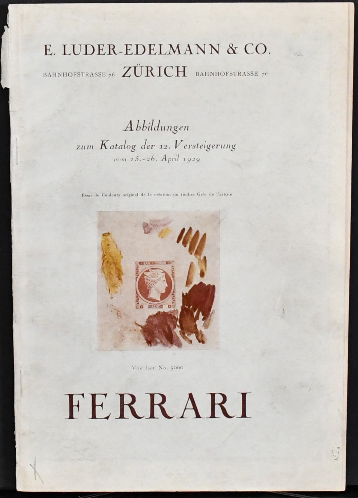 Griechenland, Ferrari, der legendäre Auktionskatalog Luder-Edelmann 1929 komplett (XII. Auktion, später Corinphila) in guter Gebrauchserhaltung (Fototafeln kleine Umschlagmgl.), mit nicht nur der Ferrari-Slg., sondern auch seltenem Angebot weltweit