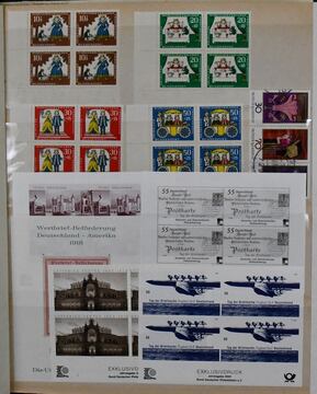 Westeuropa, Abo-Nachlaß mit Bund-Jahrbüchern 1993-2000 kpl. (Mi. 890,-), Ganzsachen-Slg. Liechtenstein, FDCs Bund, Niederlande und Schweiz, im Karton