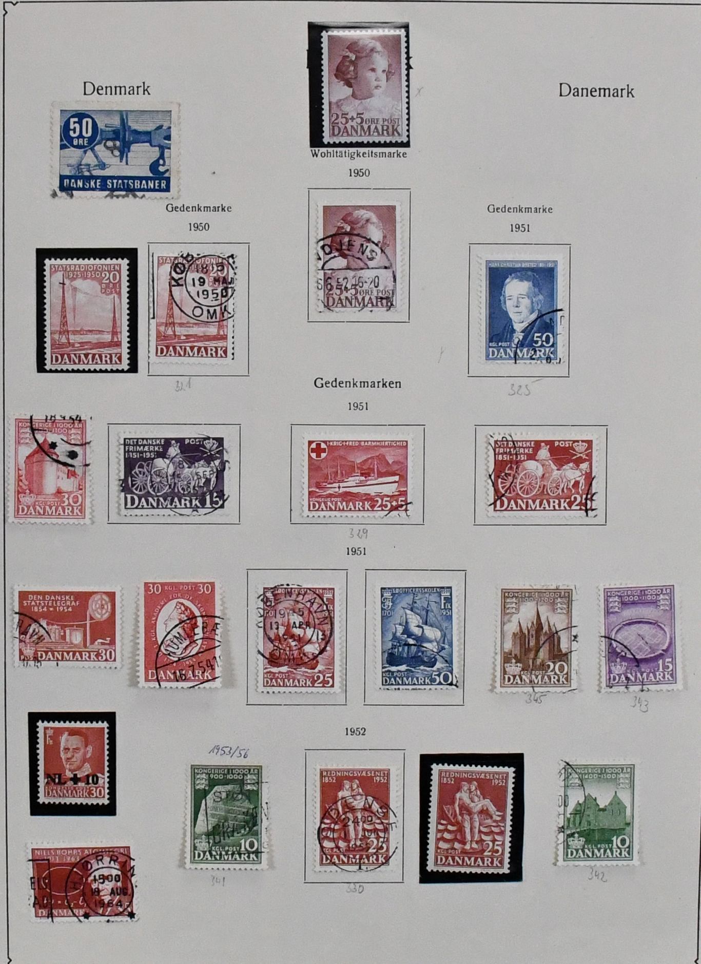 Dänemark, 1851/1988, sortenreicher Bestand, meist gestempelt, im späteren Verlauf teils auch postfrisch, im dicken E-Buch. Dabei Nr. 1, 5, viele Werte ex Nr. 22/33, Nr. 159/65 postfr. usw. Dazu Dienst ab Nr. 2, Porto Nr. 1/7, Postfähren- und Verrechnungsmarken. Mi. 6000,-