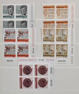 Färöer, 1981-192, umfangreiche postfr. Viererblock-Slg. auf guten Blankoblättern und wohl nahezu kpl. Mi. ca. 1350,-