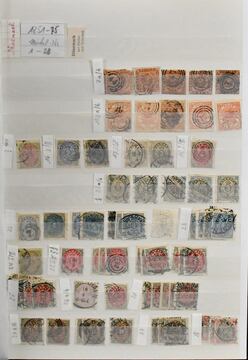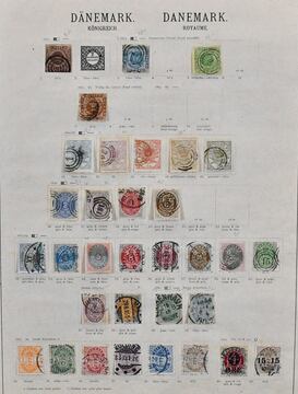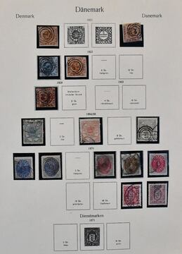 Dänemark, 1851-1913, meist gest. Slg. auf alten Schaubek-Vordrucken, dabei u.a. Nr. 1, 3, 5, 9, 11-15, 16-19, 22-31, 32-33, 47-52, 62, 81 usw., sowie Dienst- und Verrechnungsmarken